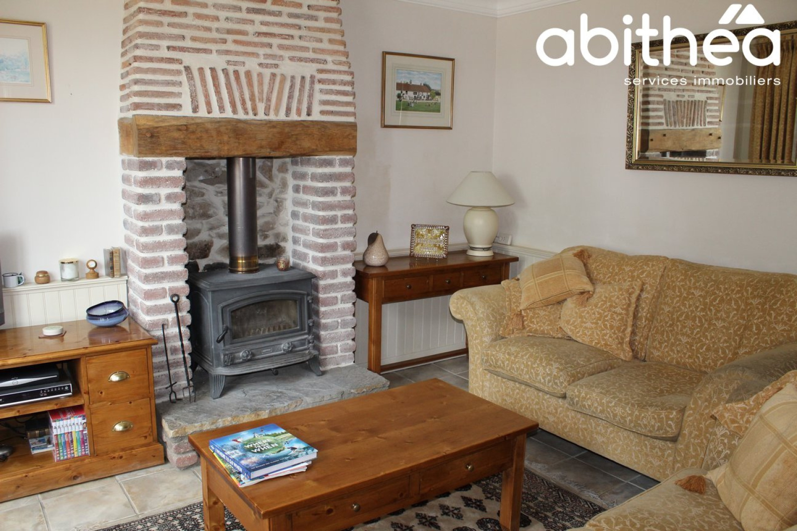 Cette maison est magnifiquement rénovée, grand hall d'entrée avec portes vitrées, cuisine équipée, petit salon, salle de petit-déjeuner, grand salon triple exposition, salle à manger donnant sur terrasse avec poêle à bois suspendu. Ses deux ensembles de portes vitrées s'ouvrent sur le jardin.