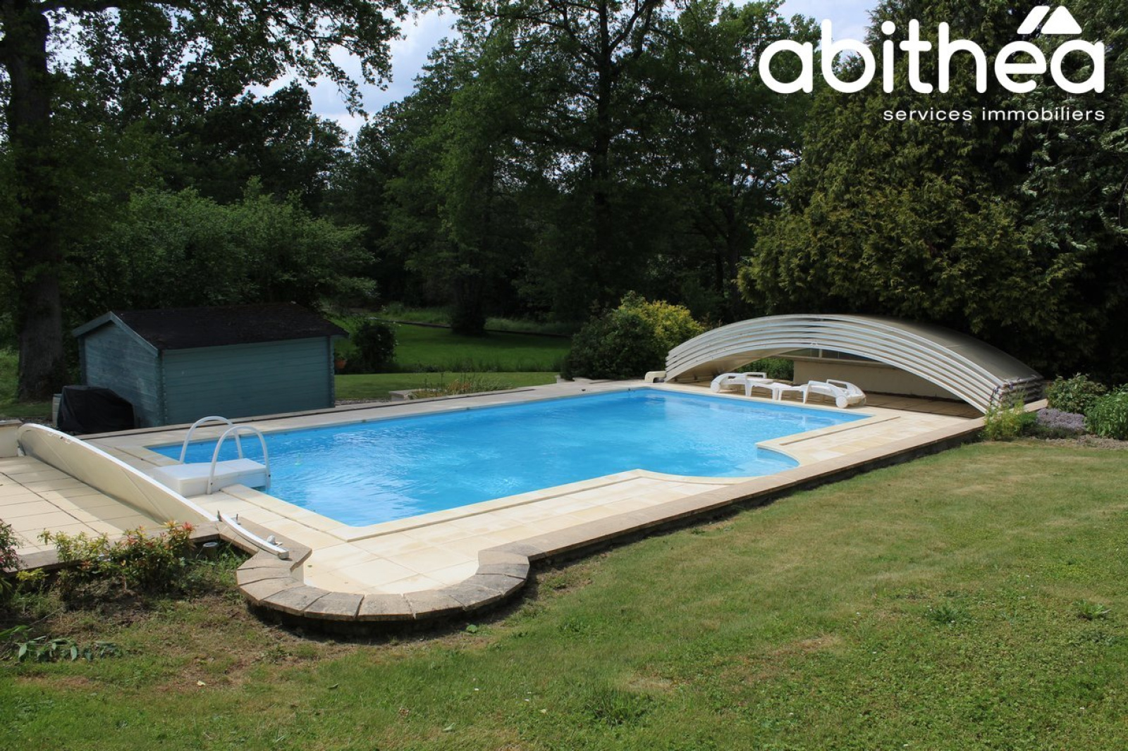 Piscine enterrée de 10m x 5m. Grange de construction récente pour le stockage. Terrain arboré avec ruisseau sur 4274 m². Assainissement collectif.