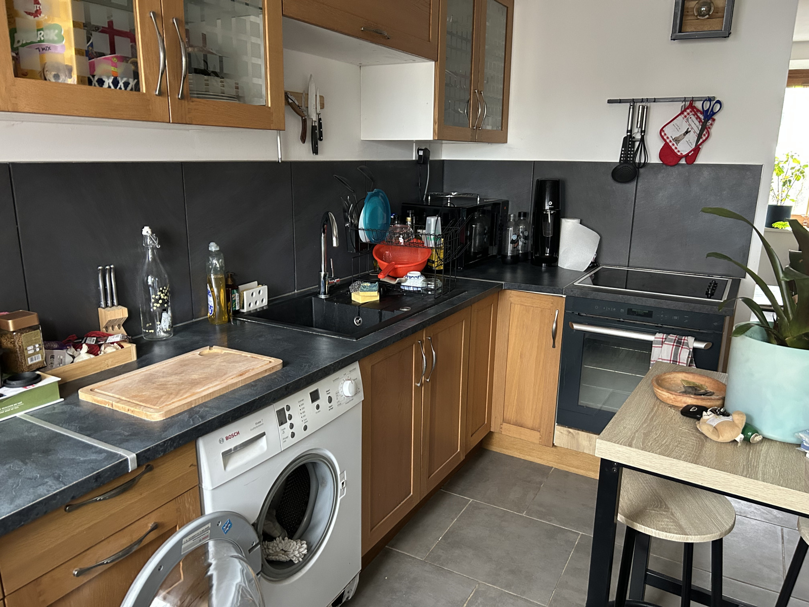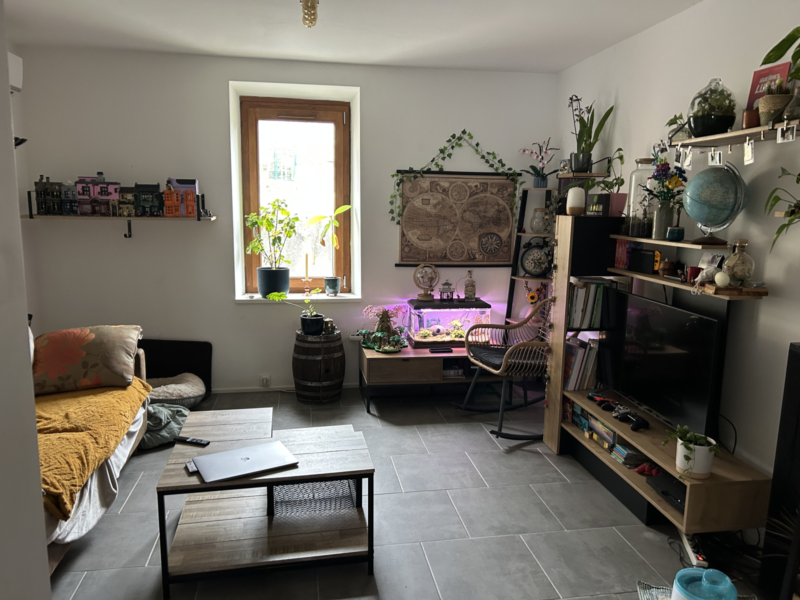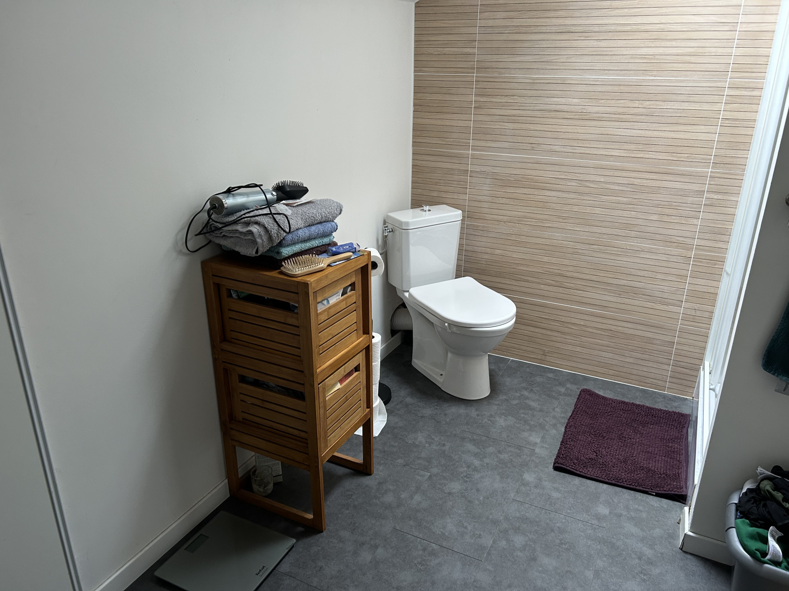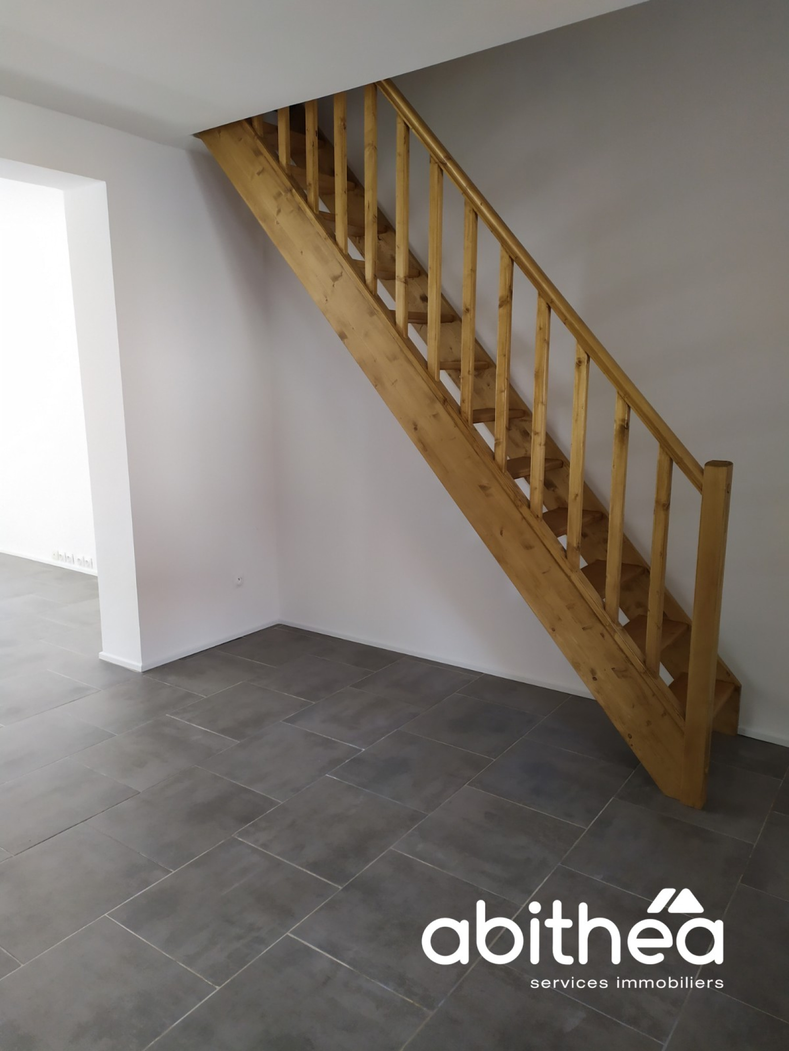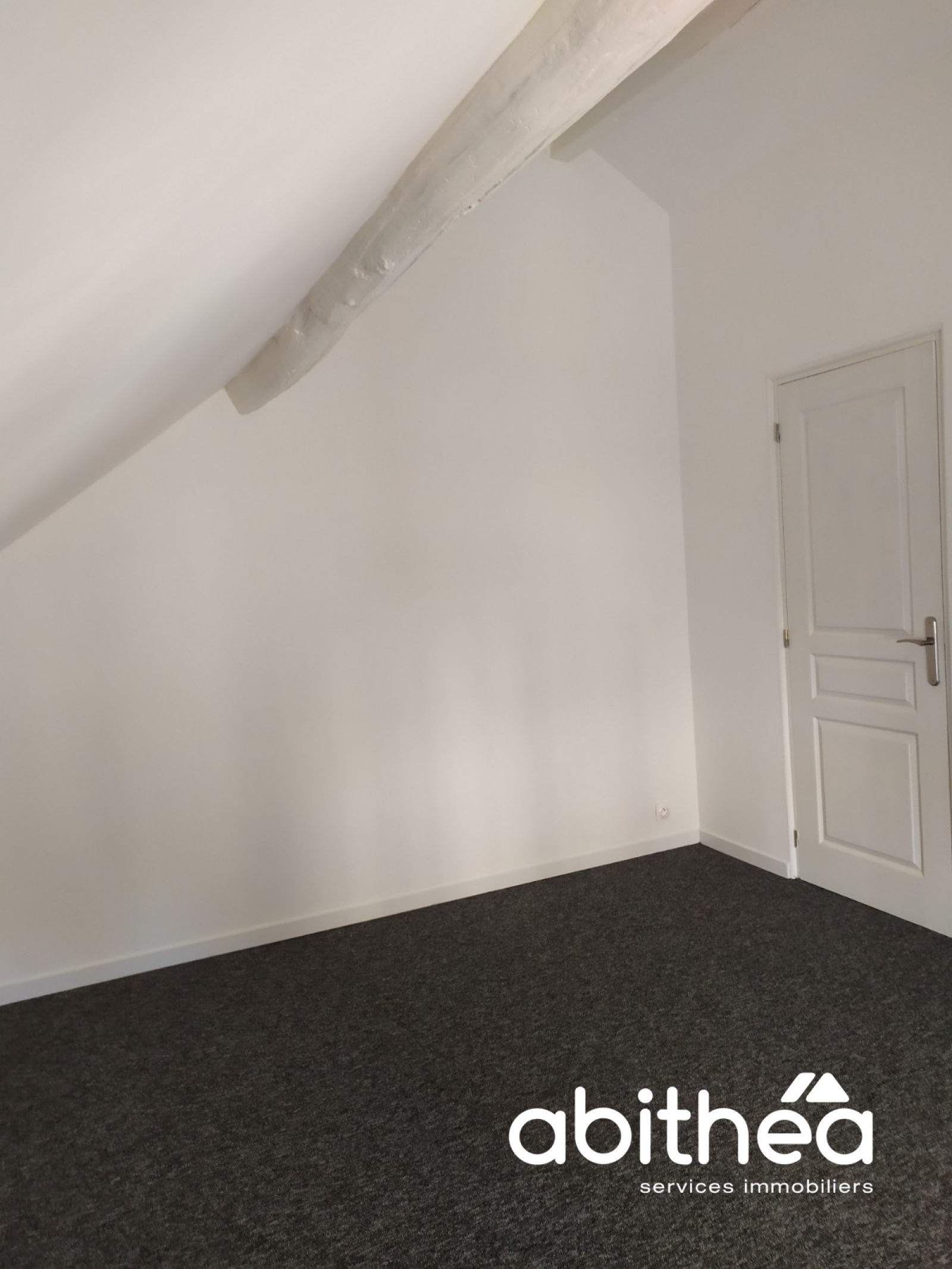L'escalier droit vous mène à l'étage et à l'espace nuit avec sa chambre mansardée, sa salle d'eau moderne avec rangements. L'ensemble fait environ 60 m²... mais qu'on s'y sent bien !