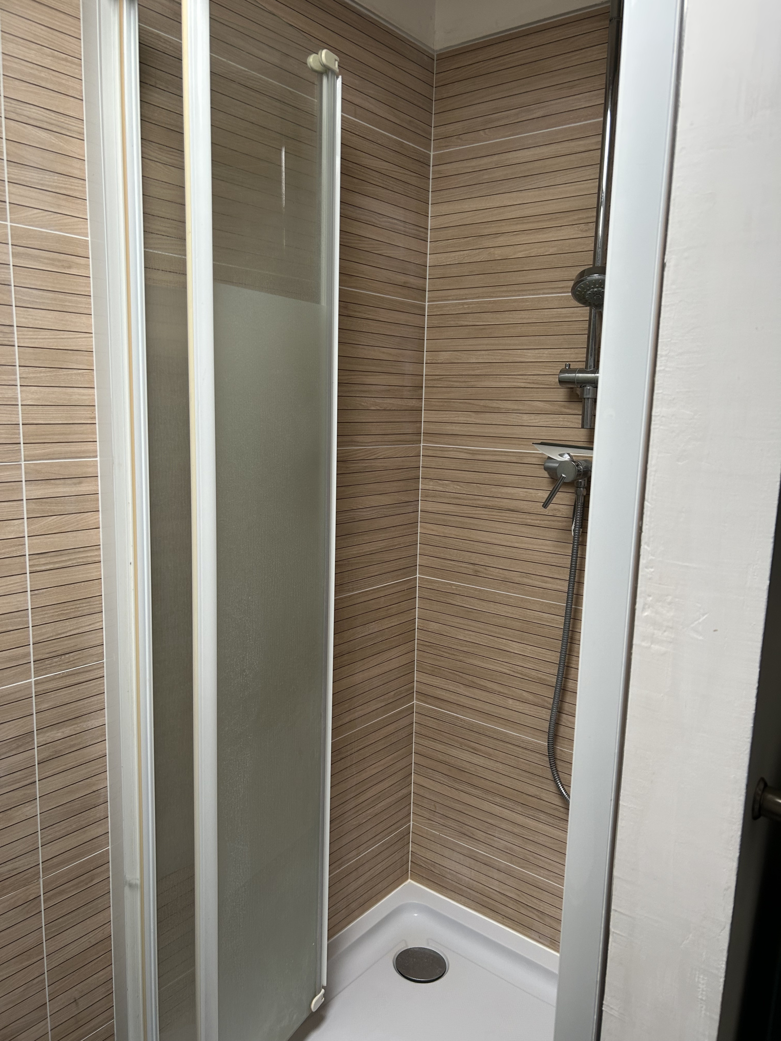 The straight staircase leads upstairs to the sleeping area with its attic bedroom and modern shower room with cupboards. The whole area is around 60 m²... but it feels so cosy!