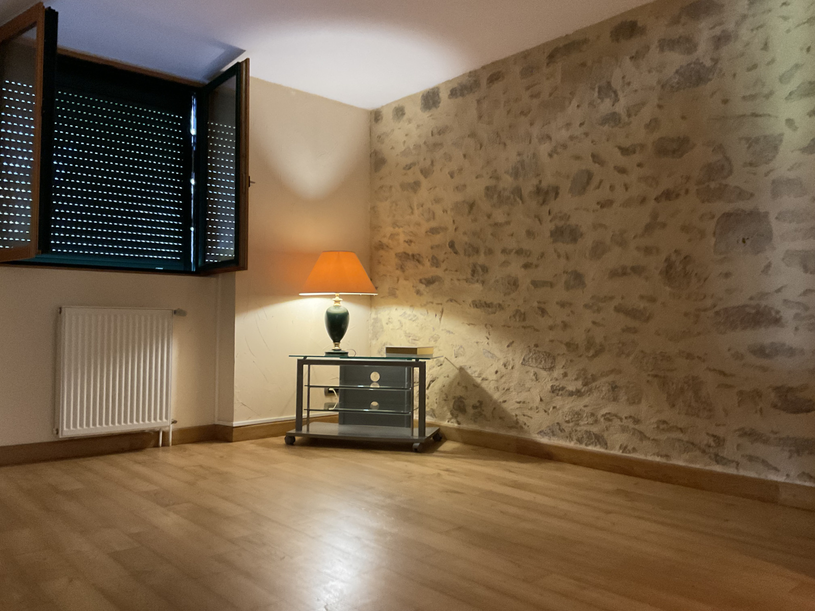 - En RDC d'un vaste séjour-salon, d'une chambre avec salle de douche, d'un wc séparé et d'une cuisine équipée ouverte sur la grande salle.