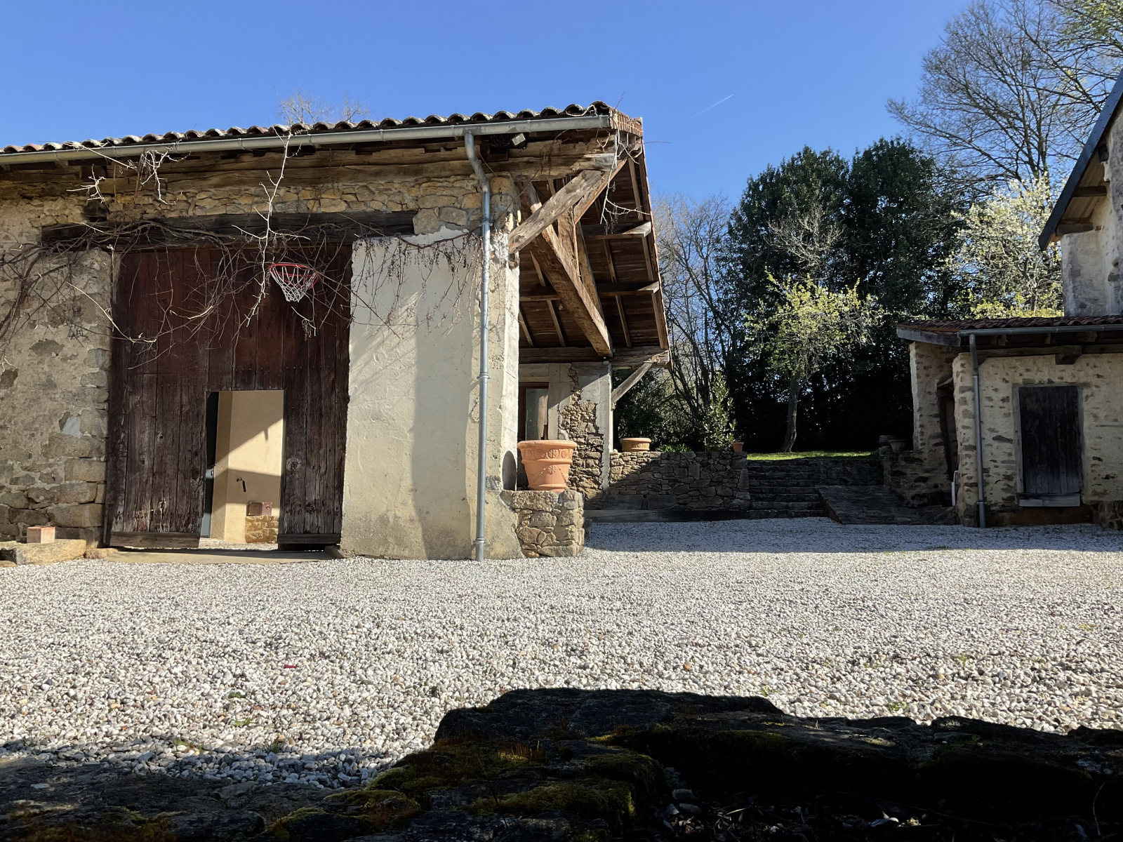 La dépendance, ancienne grange entièrement rénovée vous servira de garage d'environ 62 m² et du carport pour trois véhicules.