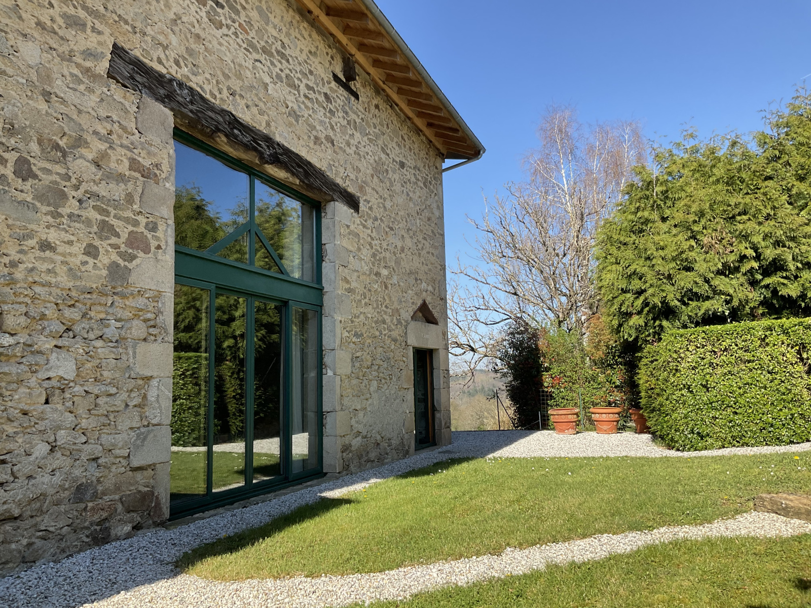 L'ensemble de l'habitation est baignée par la lumière naturelle provenant des baies vitrées et des fenêtres et des nombreux vélux.