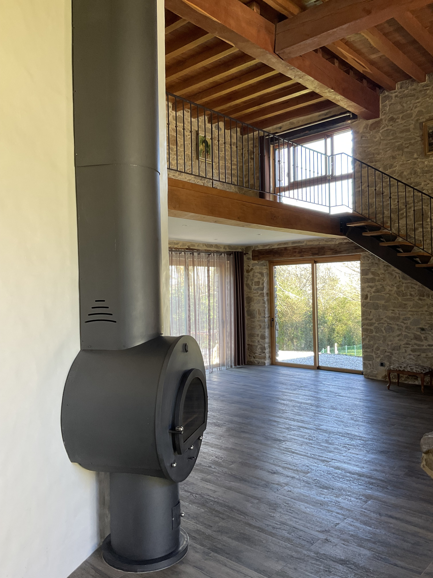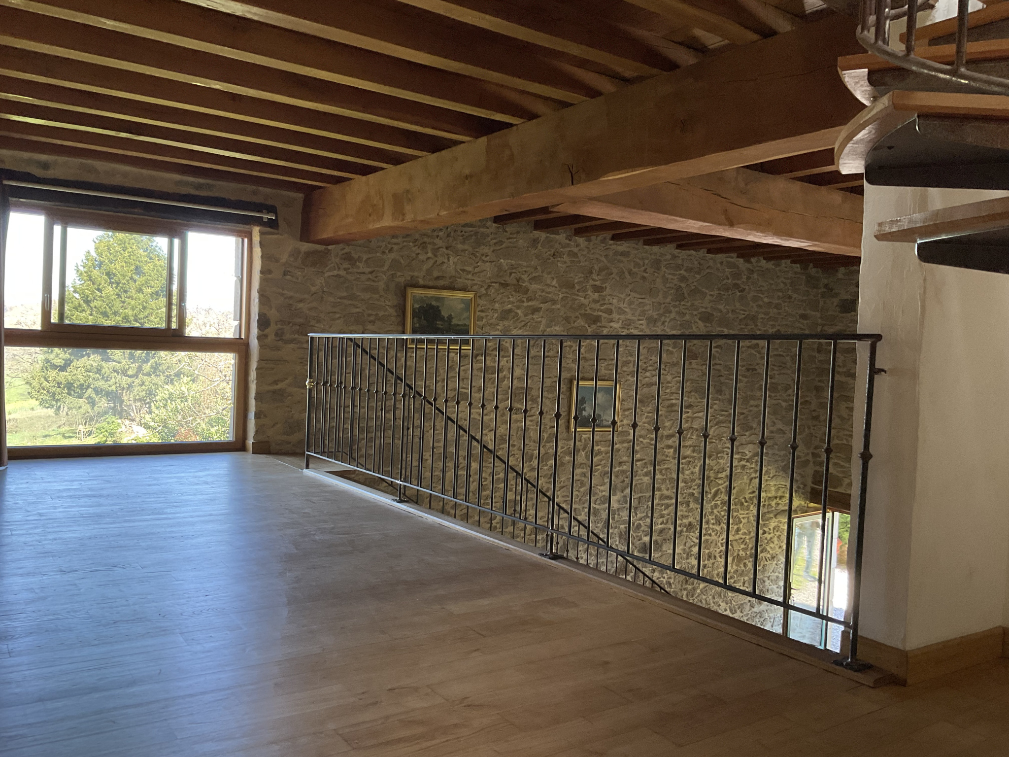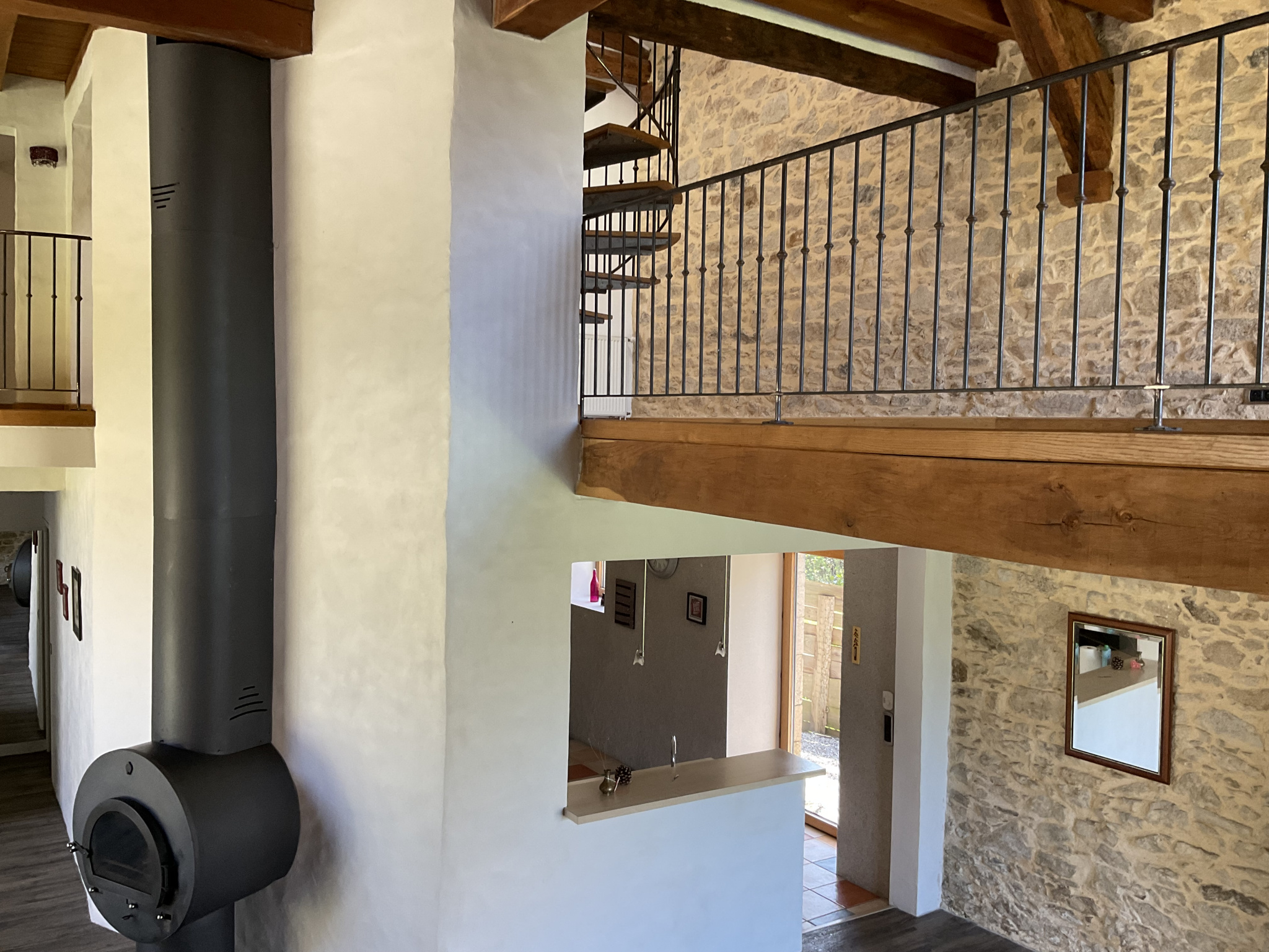- Au premier étage une mezzanine distribue une chambre avec dressing, une salle de bains et un wc séparé.