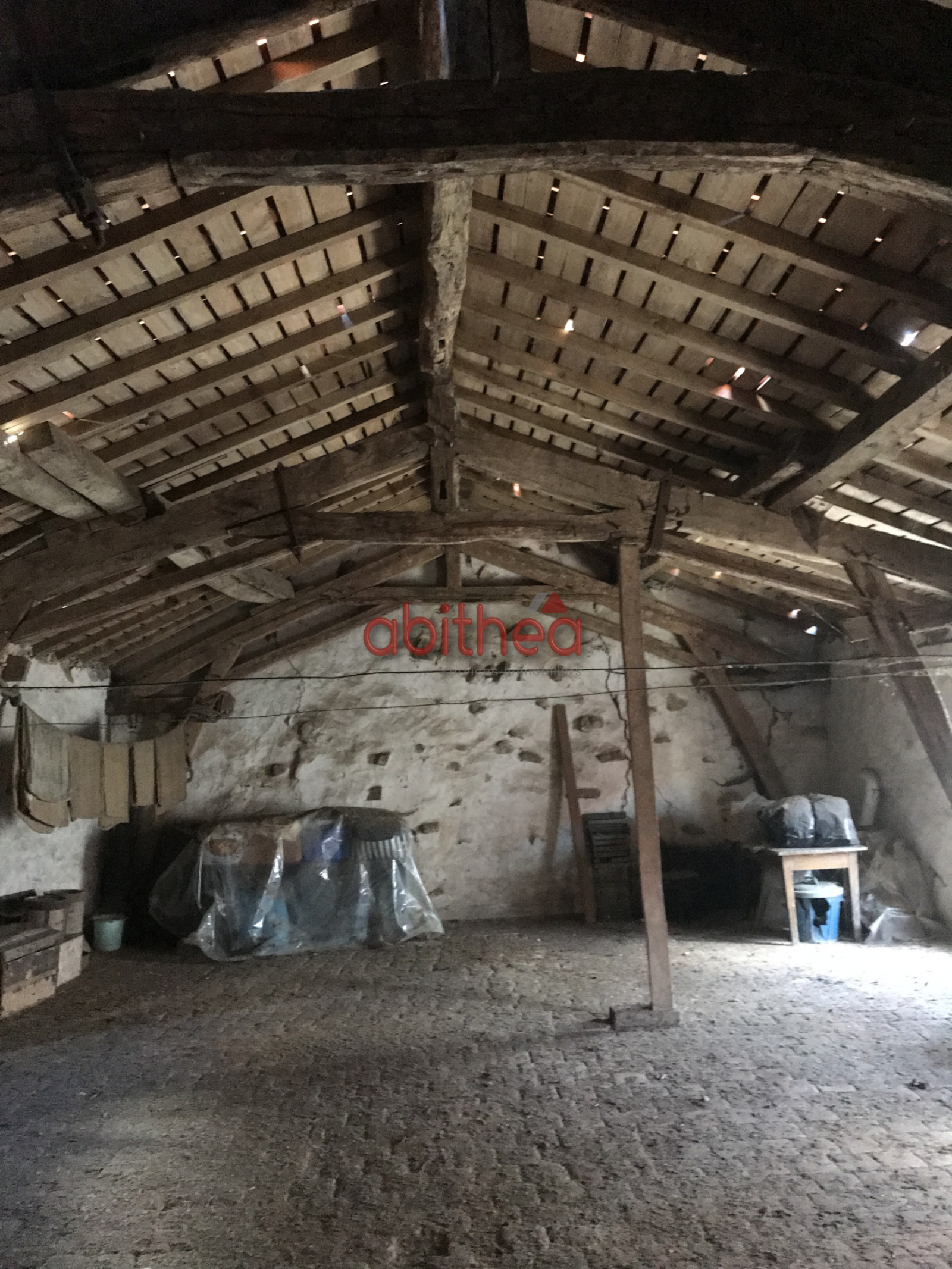 En face de la maison, une grange de 180m², possédant une grande hauteur pour du stockage, et vous disposerez d'un grenier spacieux.