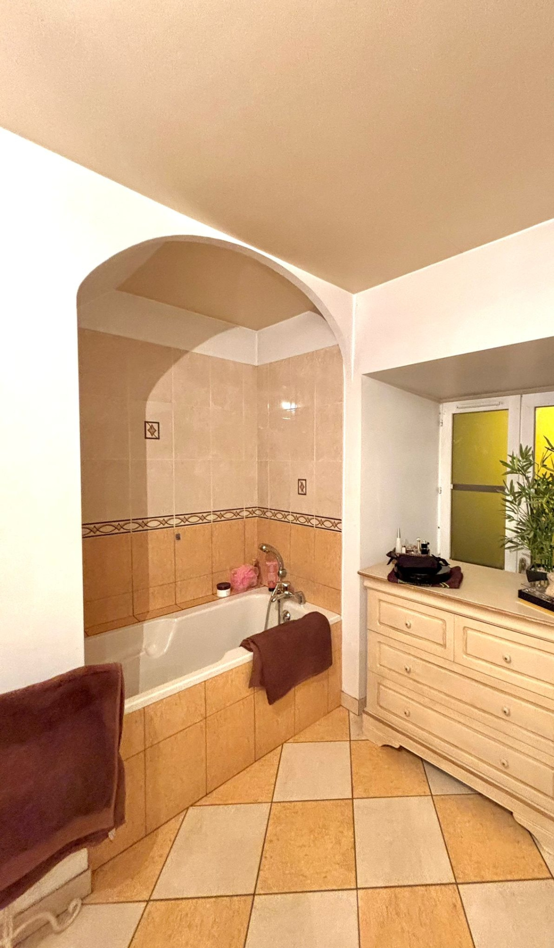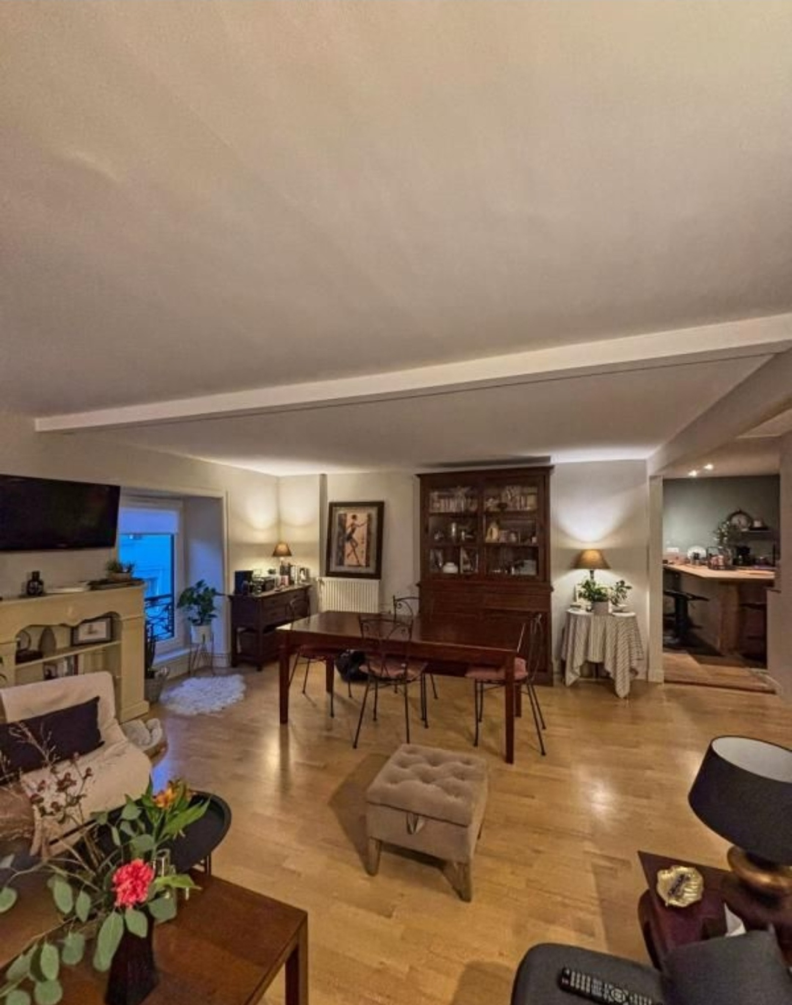 - Un appartement composé d'un grand salon-séjour, une cuisine aménagée, deux grandes chambres, un bureau, une salle de bain, WC, buanderie et chose rare en centre-ville, donnant sur une terrasse avec un jardin de 300 m² sans vis à vis.