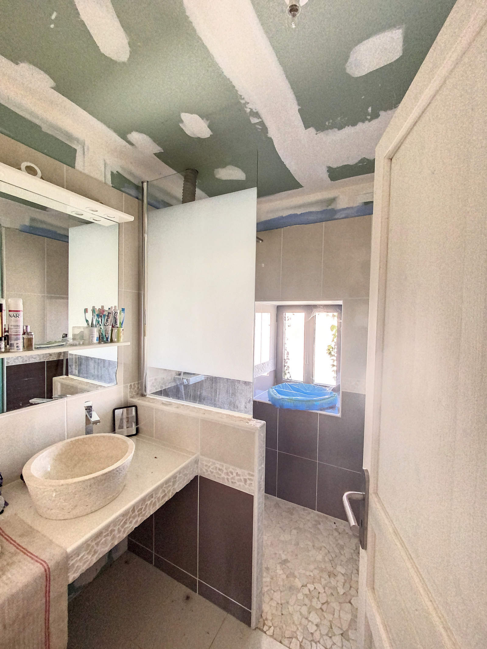 La rénovation est à terminer, mais l’isolation est faite, les menuiseries sont en double vitrage, l’assainissement est neuf et la toiture est refaite.