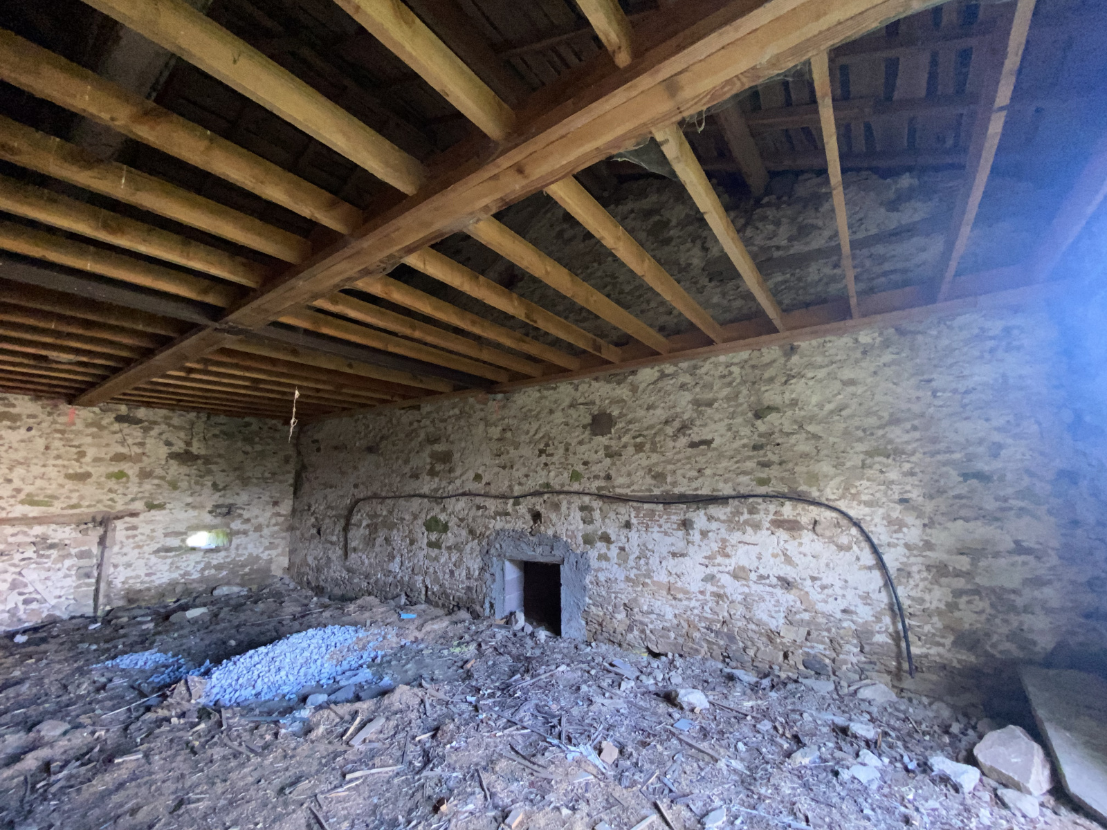 1/ Une grande longére de plus de 250 m² au sol, la structure est en bon état, la charpente et la couverture sont récentes.