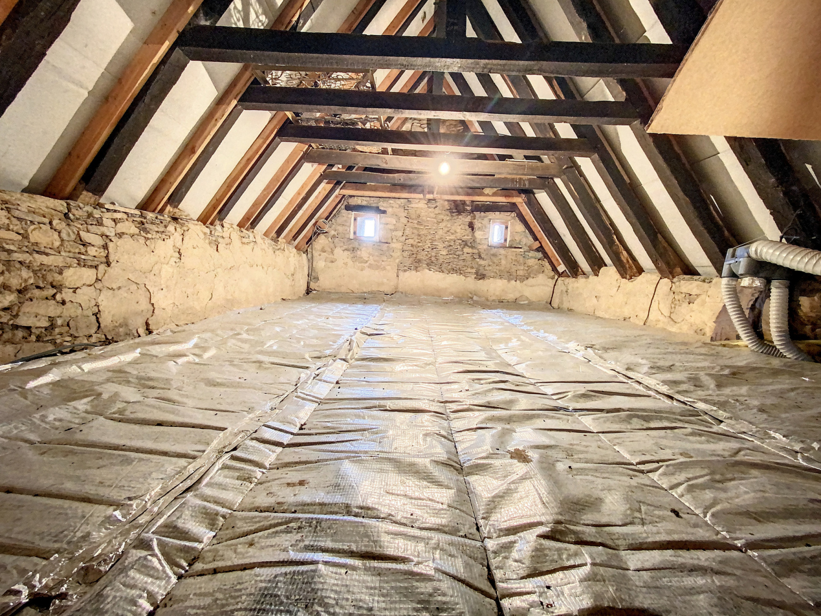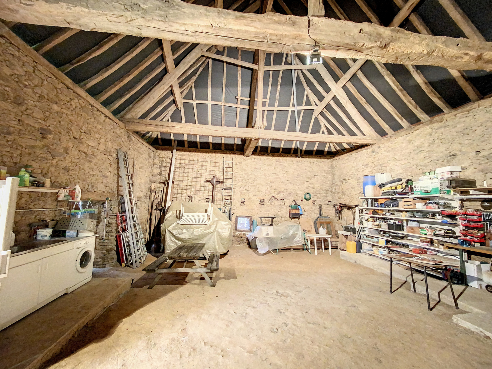 La rénovation de qualité saura combler les plus exigeants, nous disposons d’une maison d’habitation et d’une immense bâtisse en excellent état (toiture neuve) de quasi 200 m² au sol, laissant ouvert le champ des possibles.