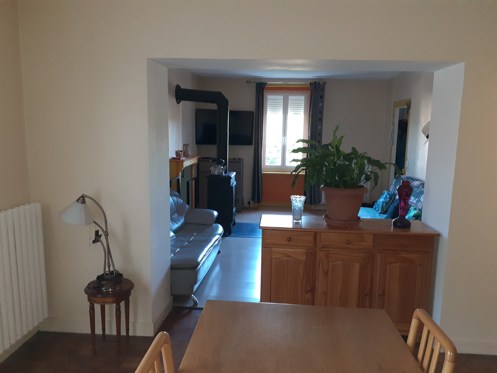 Centre bourg de LADIGNAC LE LONG, Vous trouverez cette charmante maison édifiée sur cave avec un accés extérieur pour cette dernière. Elle est composée en rez de chaussée d' une grande cuisine aménagée d'environ 16 m², un salon-séjour d'environ 33 m² avec un poêle à bois, une salle de bain ainsi qu'une buanderie. A l'étage, on y trouvera 2 chambres d'environ 16,5 m² chacune et un escalier permettant l'accés aux combles. Ces derniers sont aménageables.