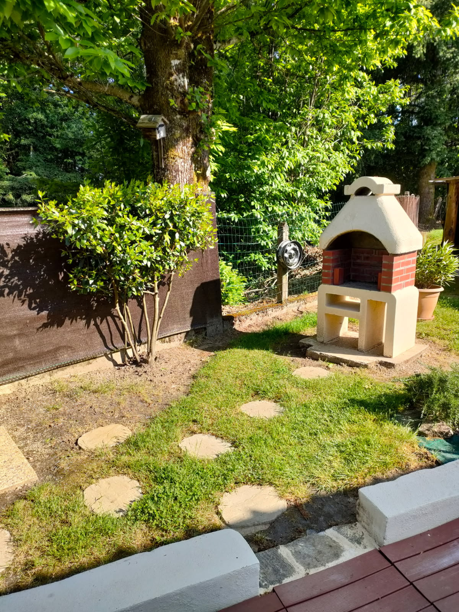 A l'extérieur, nous trouverons une terrasse aménagée avec barbecue et douche solaire, un garage d'environ 40 m², le tout sur un terrain arboré et cloturé de 1286 m².