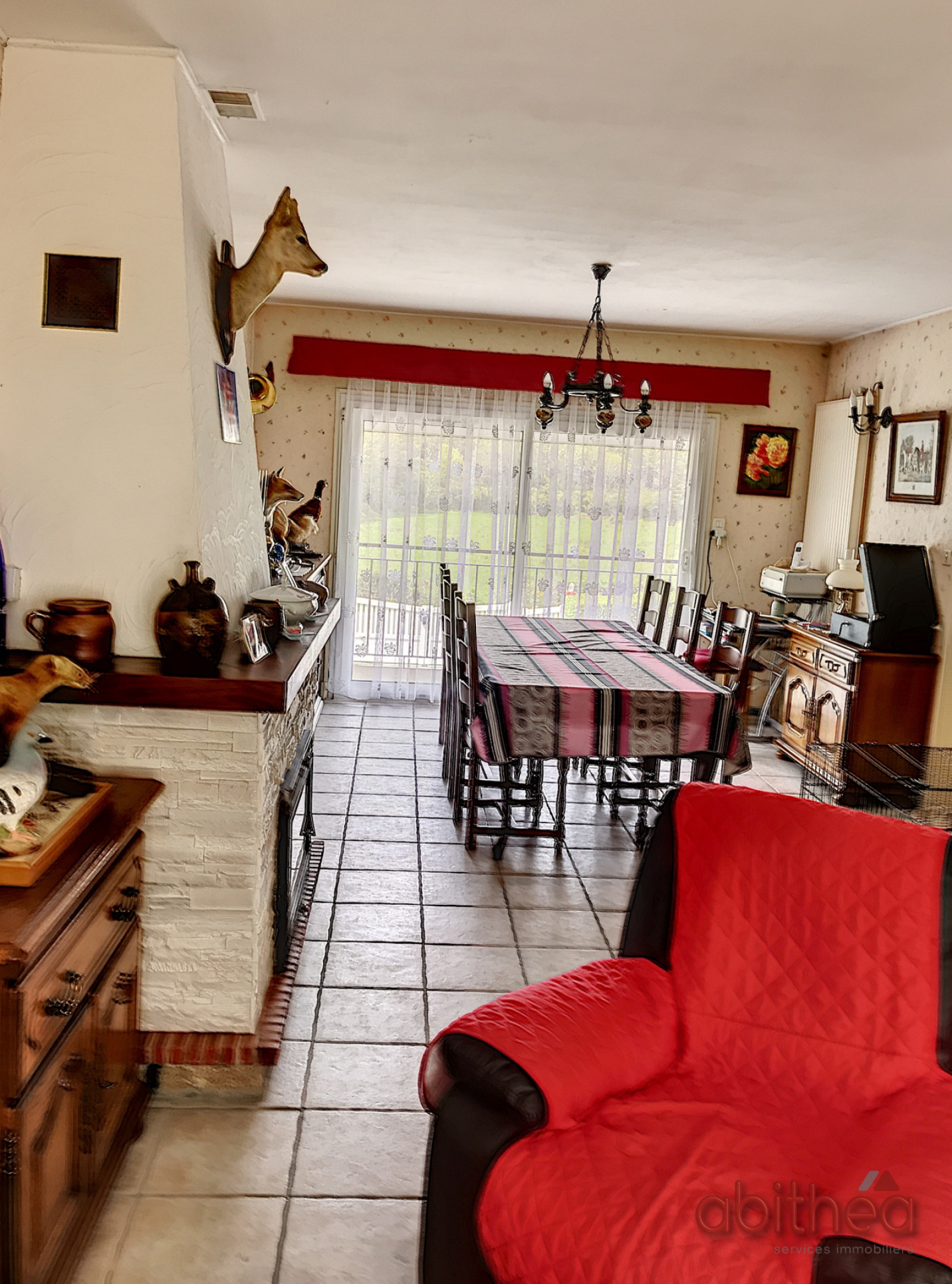 La première maison, se compose d'une entrée qui dessert une cuisine équipée, un séjour avec cheminée et insert, une grande baie vitrée ouvrant sur un balcon.