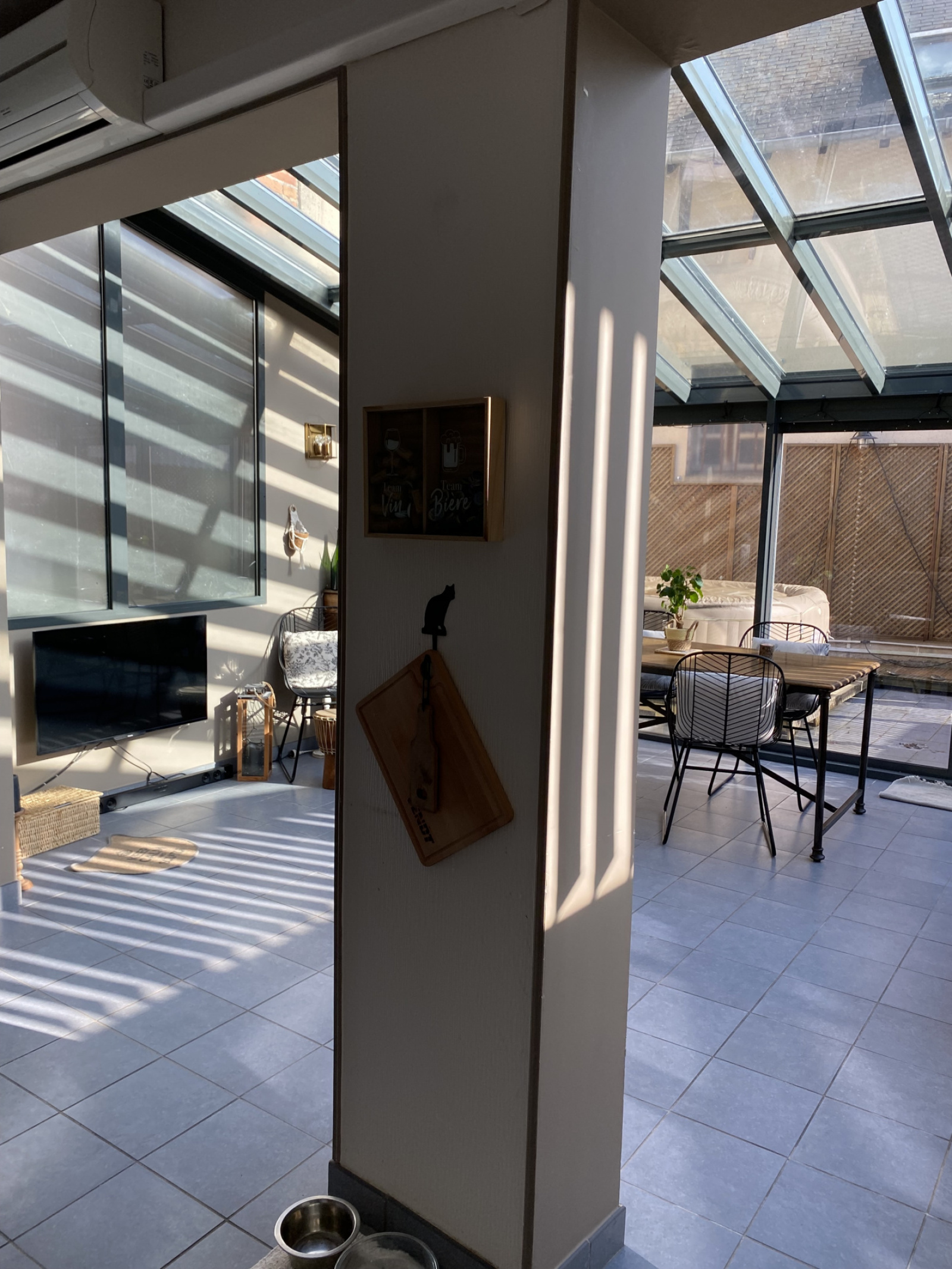 Vous allez apprécier le confort et les rénovations effectuées avec goût et des matériaux de qualités, chaudière gaz neuve, pompe à chaleur air/air réversible, tout à l'égout, toiture neuve et électricité révisée, menuiseries PVC double vitrage-volets roulants électriques, le côté extérieur avec une agréable terrasse de 20 m² environ avec local de rangement.